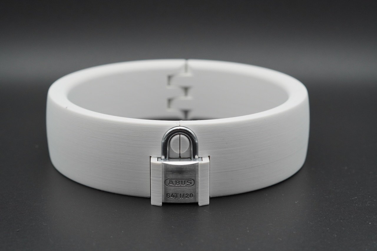 This product is secured with a high-quality ABUS padlock made of aluminum. If you wear it, you can immediately see that you are locked because the lock is clearly visible to everybody. Without a key, your collar can no longer be opened without causing damage.