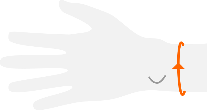 To measure the wrist, place the band above your wrist knuckle and stretch the band firmly around your wrist. Do not pull the band too tight, just enough for the band to gently touch your skin.